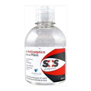 Gel antisséptico para as mãos com glicerina e agente hidratante.